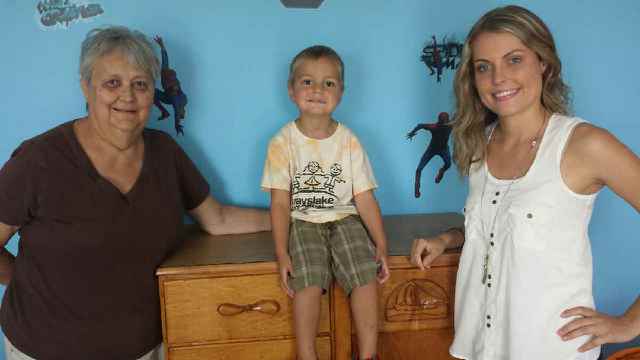 My mom – Mary Ann Anderson – with the two beneficiaries of her handiwork, her grandkids Miles and Alex